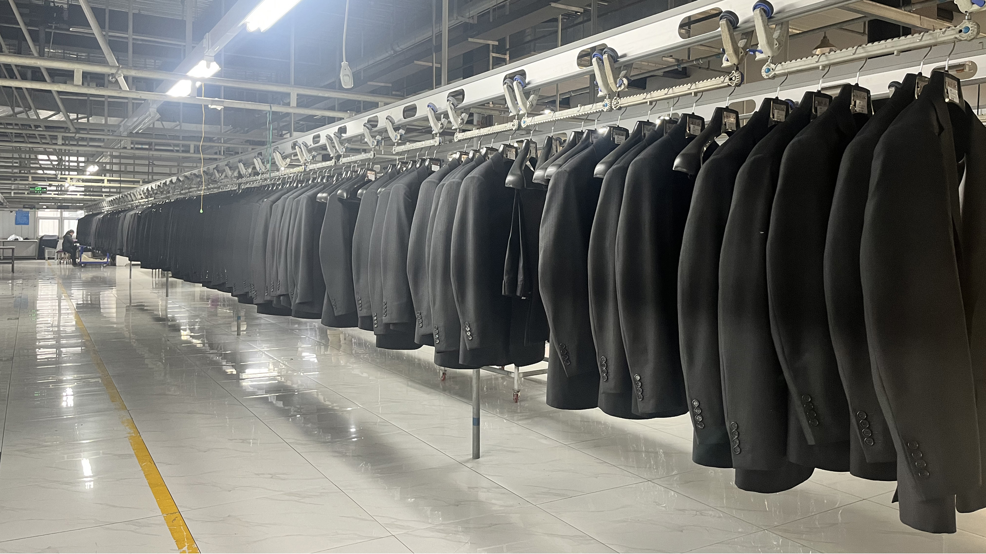 開放式工廠 行政辦公樓 形象展示店 展廳一角 樣衣展示 自動化裁剪 車間精細生產 流水線成品庫